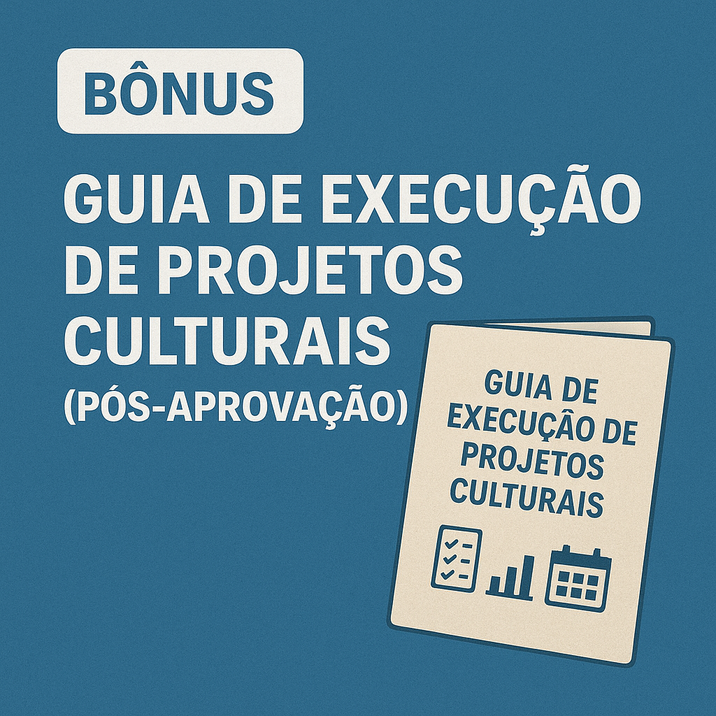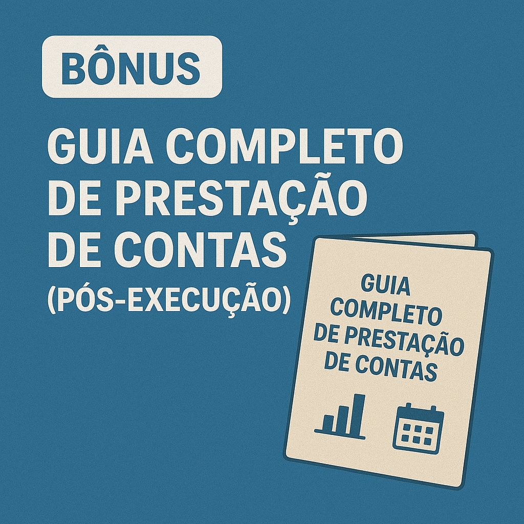 Os bônus são um presente exclusivo para quem tiver o projeto aprovado! Eles serão liberados após a comprovação da aprovação do seu edital, garantindo que você tenha suporte completo nas fases de execução e prestação de contas, sem custos adicionais.